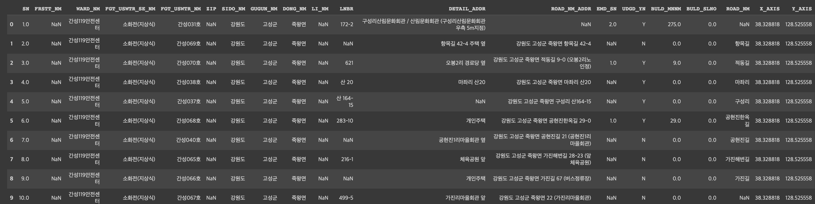 fire_df = pd.read_csv('./관할서 센터별 소방용수 데이터.csv')