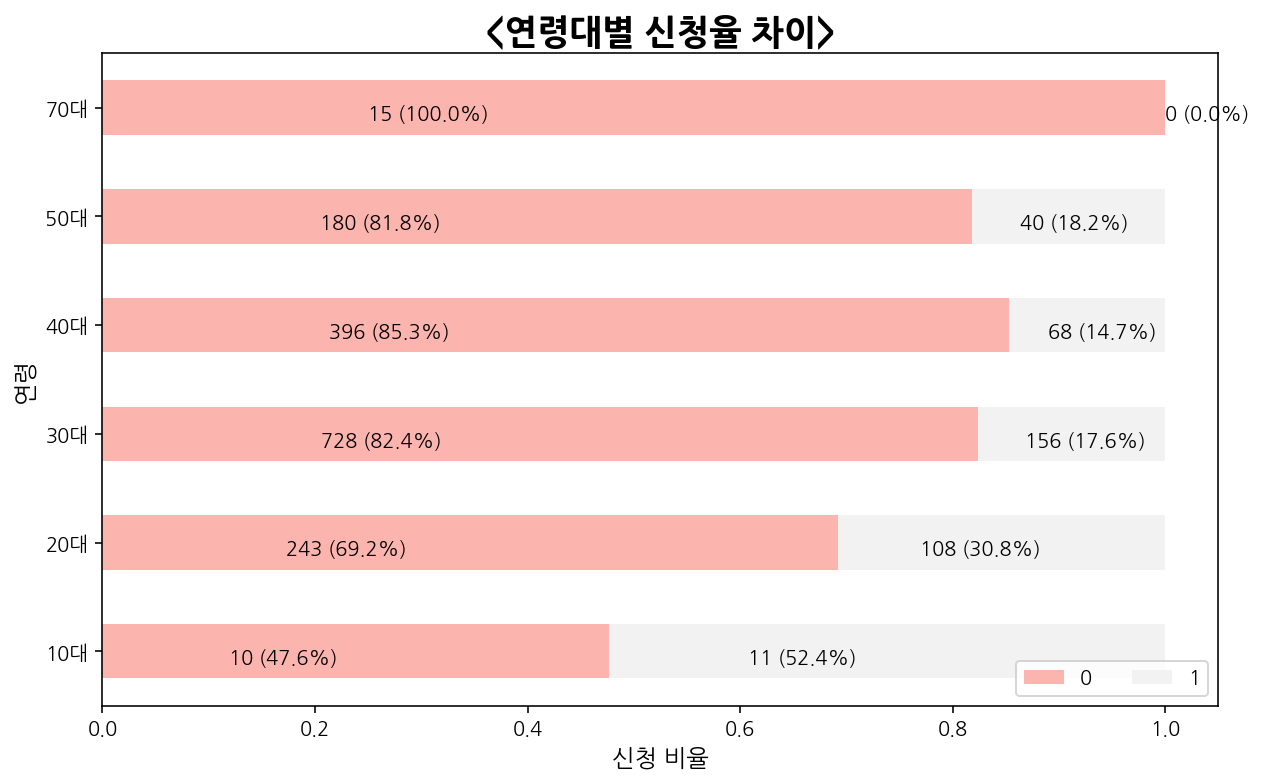 plt.title('<연령대별 신청율 차이>', fontsize= 'xx-large', fontweight= 'bold')
