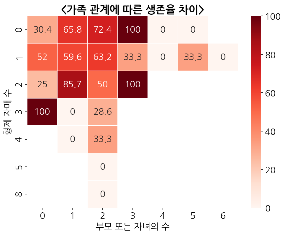 Graph2-2) 가족 구성원에 따른 생존율 차이 HeatMap