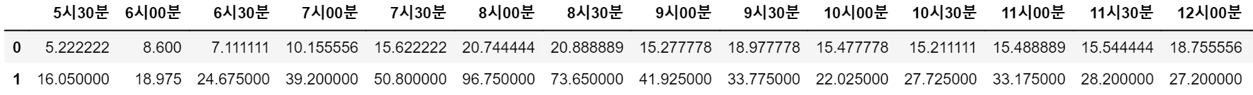 df_we_up_1 = pd.DataFrame(df_1.iloc[0,:]) #주말 1호선 상선 혼잡도